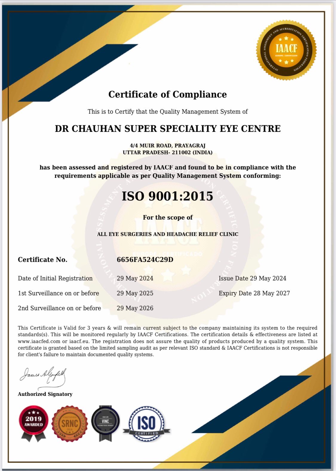 DR. Chauhan Super Specialty Eye Centre in Prayagraj is a pioneer, being the first-ever ISO 9001:2015 certified super specialty eye care Centre in the region. Under the esteemed leadership of DR. Anoop Chauhan, the Medical Director, the Centre has been providing exceptional eye care and treatment for various eye-related issues. With a commitment to quality and patient satisfaction, DR. Chauhan and his team utilize advanced technology and personalized care to ensure the best outcomes for their patients. Their long-standing dedication to excellence has made them a trusted name in eye care in Prayagraj.